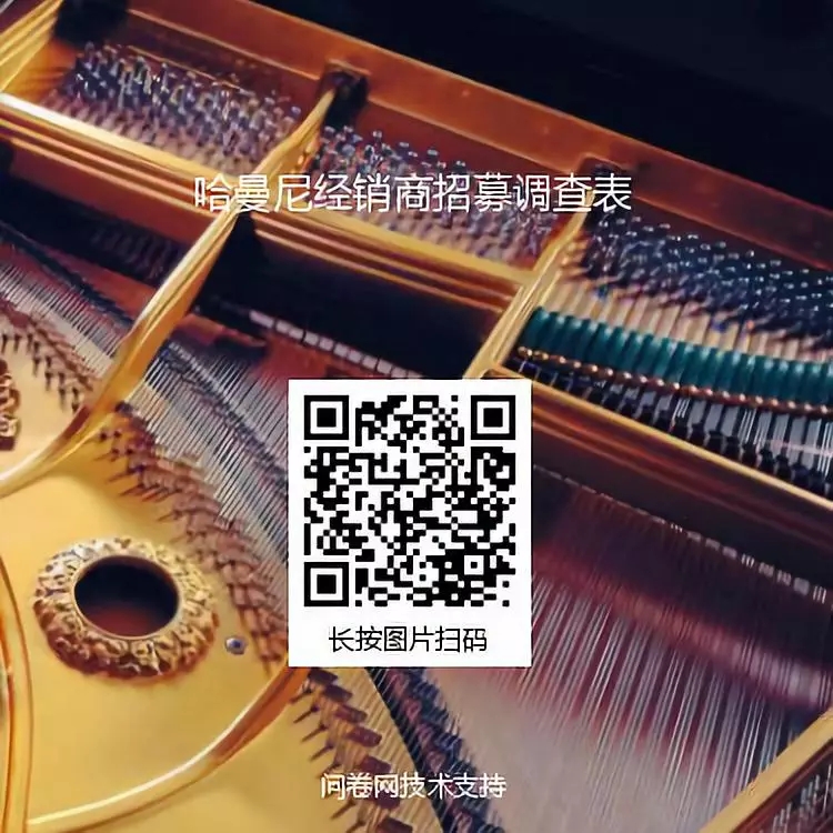 扫描下方二维码或点击“阅读原文”链接进入【哈曼尼钢琴经销商招募调查表】填写调查表,我们将于2019年9月30日前与您取得联系,并诚邀您参加上海乐器展-哈曼尼钢琴展位E1A50,与我们的地区销售经理做进一步沟通。