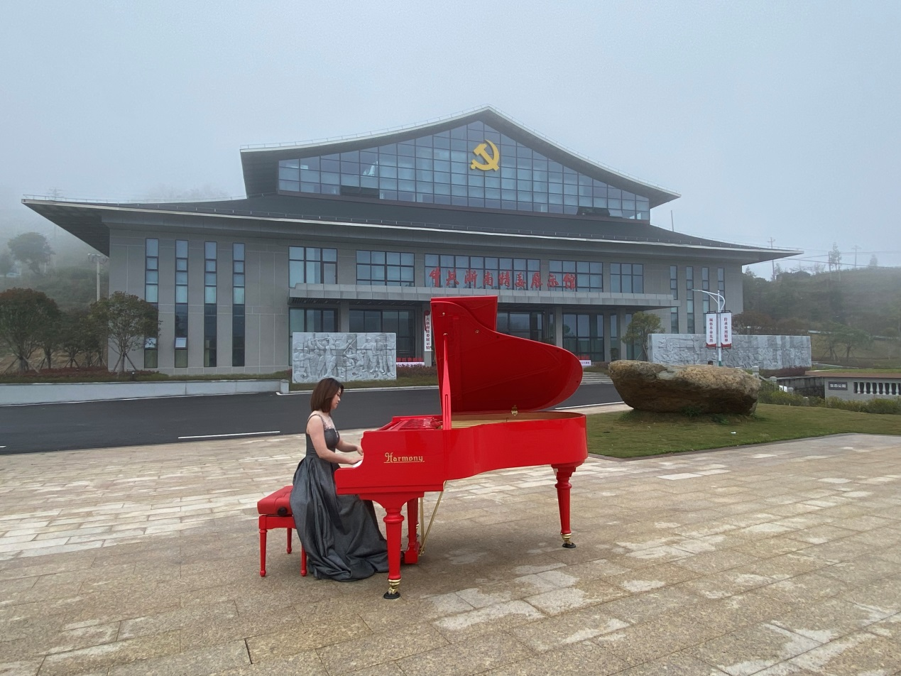 为缅怀革命先烈,献礼党的二十大,由温州市音乐家协会副主席兼秘书长、温州市“新峰计划”音乐类导师陈泳根据泰顺革命老区民歌《九峰山》改编,旅美钢琴双博士、温州市“新峰计划”音乐类学员陈露雯演奏的钢琴曲《九峰山》,在九峰山当地拍摄录制MV,在清明节期间首发。福州和声钢琴全程参与并确保完美收官。