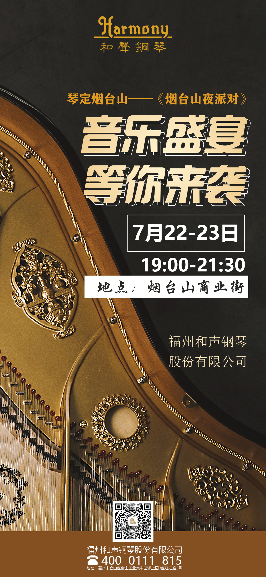 7月22日晚,福州和声钢琴携手万科地产在福州烟台山商业街举办《烟台山夜派对》活动,欢迎广大音乐爱好者现场感受和声哈曼尼钢琴带来的音乐盛宴!
