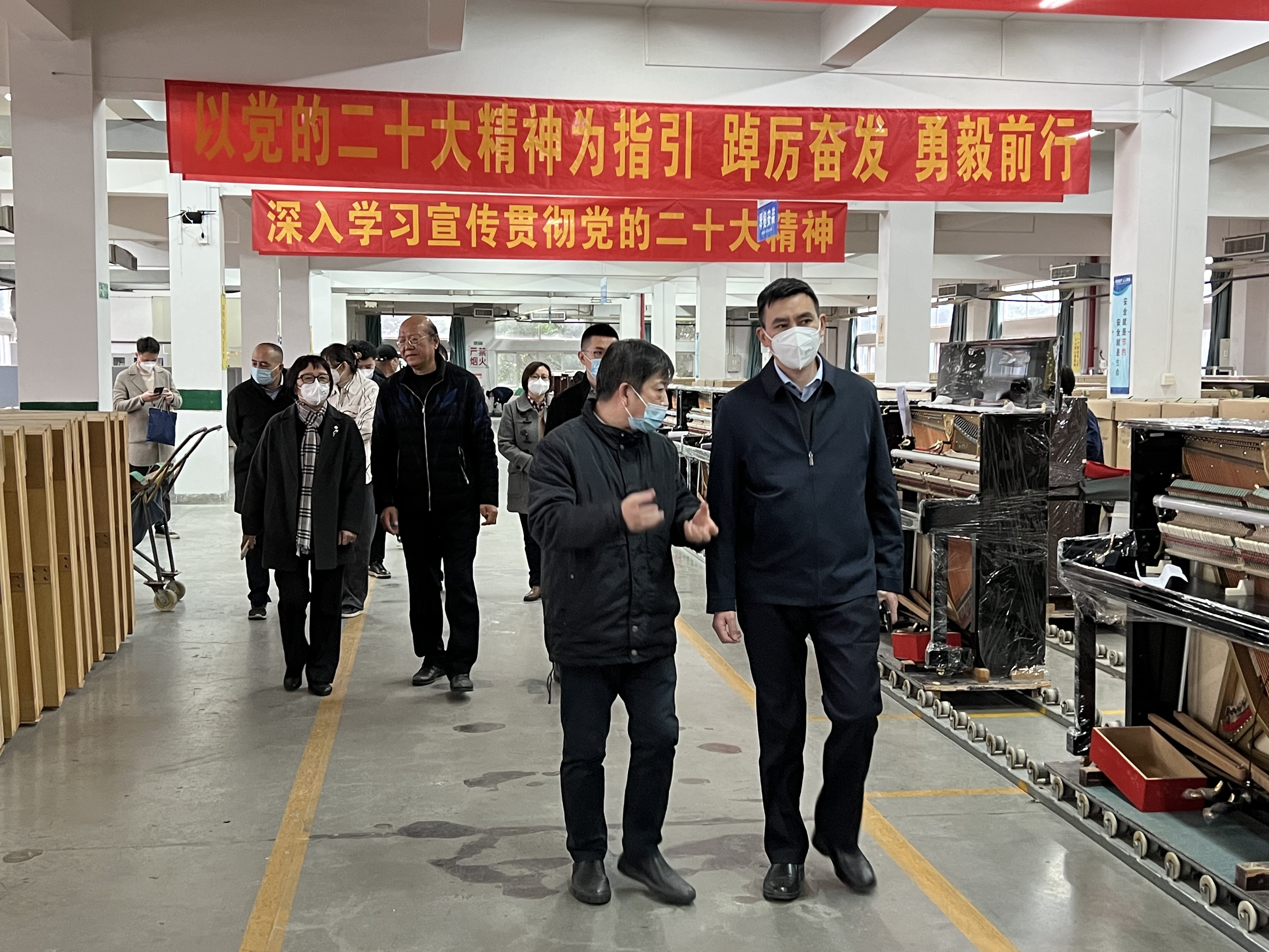 2023年1月10日下午,省旅发集团党委委员、副总经理杨利玉带队莅临福州和声钢琴股份有限公司检查指导安全生产经营工作,华闽实业集团党委书记陈丹云、董事长吴竞超、和声公司董事长刘小汀及相关部门负责人陪同。