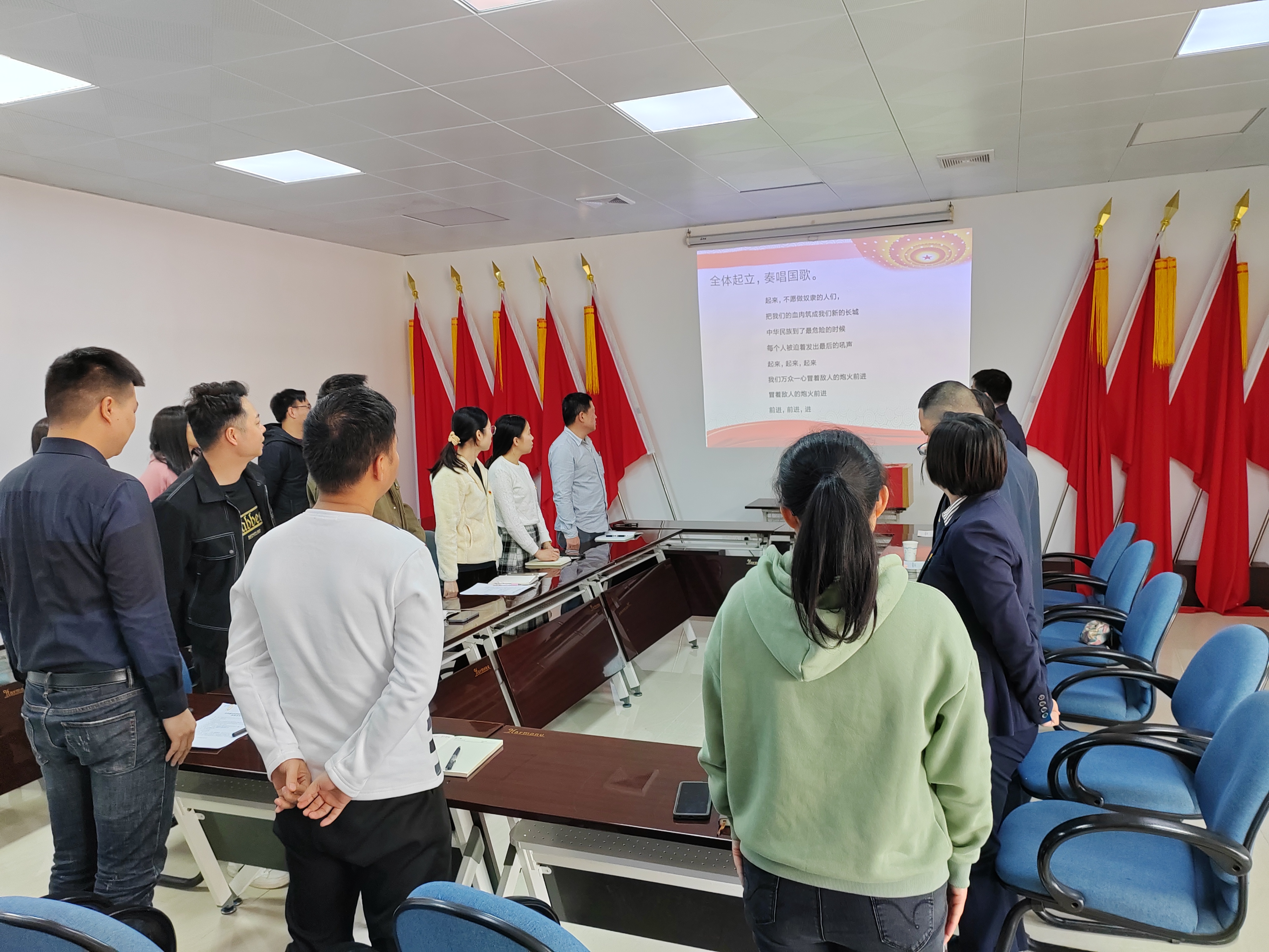 会议在庄严的国歌中拉开序幕。公司党支部宣传委员陈新同志代表上一届支部委员会作工作报告和党费收缴、使用和管理情况报告,组织委员兼纪检委员李晓雯同志宣读选举办法和介绍候选人有关情况。