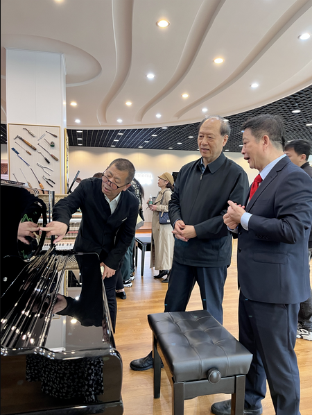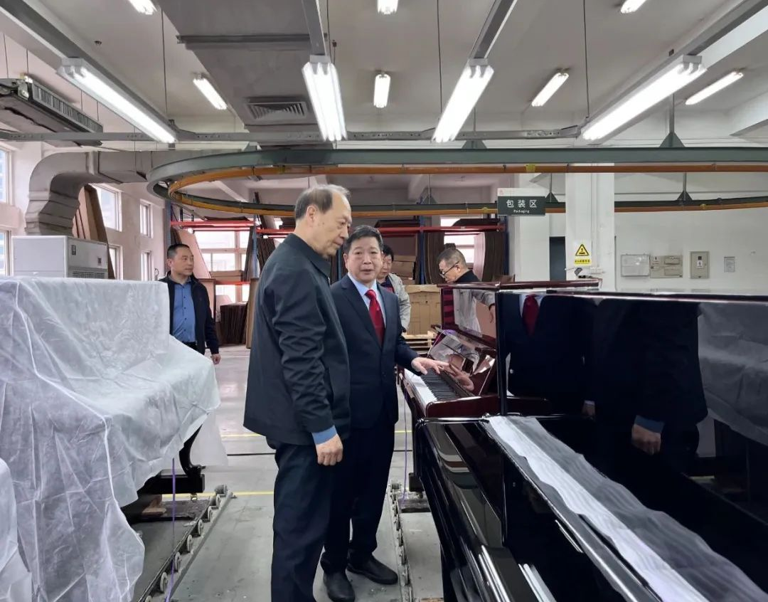 2023年412日上午,中国轻工业联合会党委副书记、中国乐器协会理事长王世成,中国乐器协会专职副理事长孙瑞勇一行莅临和声钢琴调研指导工作。和声钢琴党支部书记、董事长刘小汀等人的陪同调研。